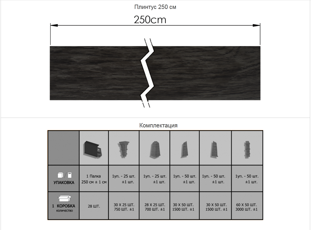 - Спосіб упаковки: Менеджер обов'язково з вами зв'яжеться про замовленні плінтуса, щоб уточнити скільки потрібно вам елементів-перехідників, декорів-куточків! Плінтус упаковується в картон.