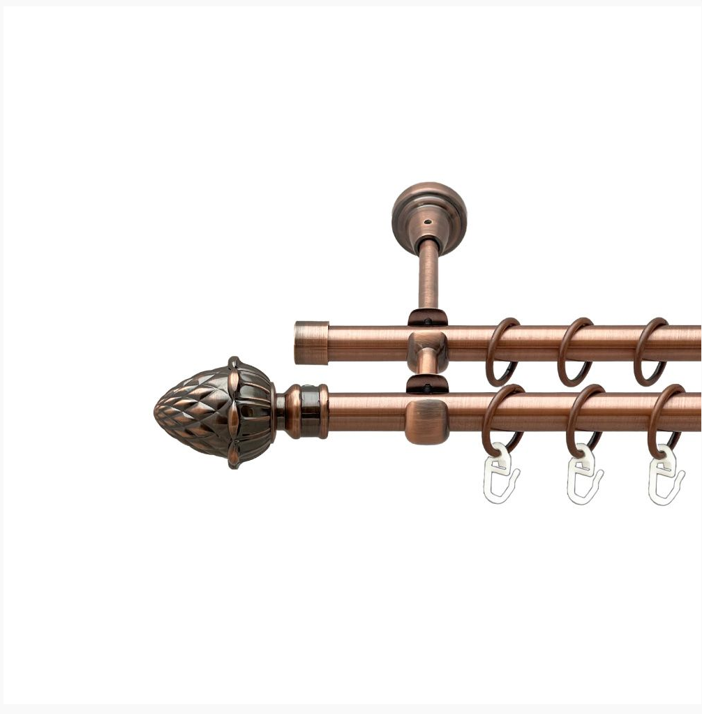 Карниз кований для штор подвійний мідь Шишка 16мм діаметр гладкий комплект